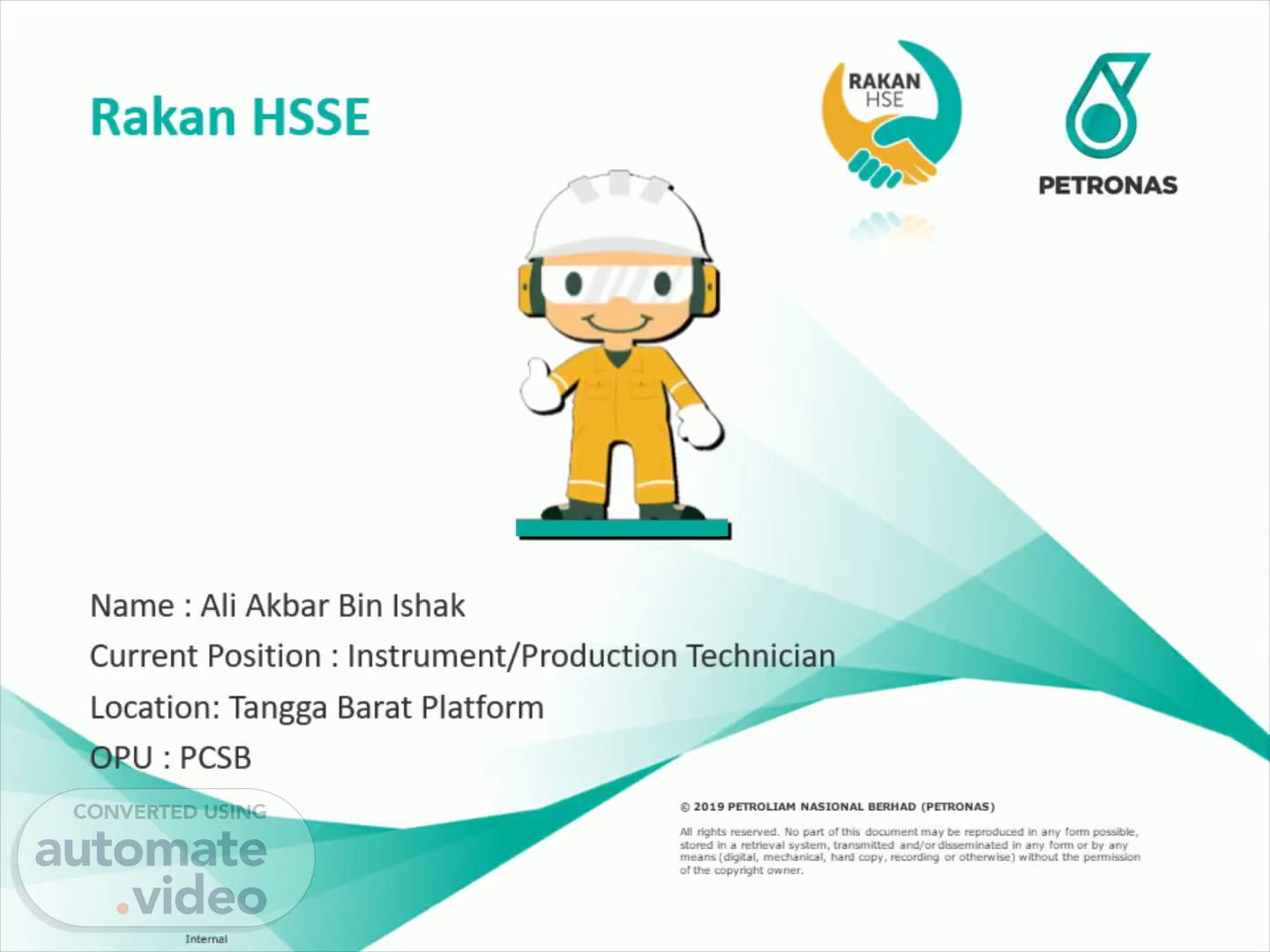 Rakan HSSE. Name : Ali Akbar Bin Ishak Current Position : Instrument/Production Technician Location: Tangga Barat Platform OPU : PCSB.