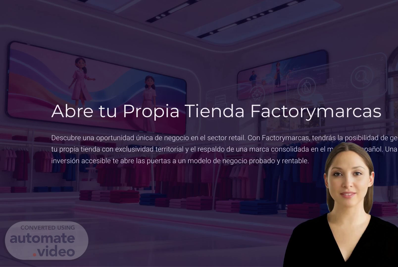[Audio] "El costo total para establecer tu tienda Factorymarcas con exclusividad en tu zona comienza desde 20.000 euros. Esta inversión incluye todo lo necesario para arrancar tu negocio con garantías de éxito desde el primer día. Se trata de una inversión competitiva en el sector retail, diseñada para emprendedores que buscan una oportunidad real con retorno controlado. No estás solo en este proceso: te acompañamos en cada paso del camino.".