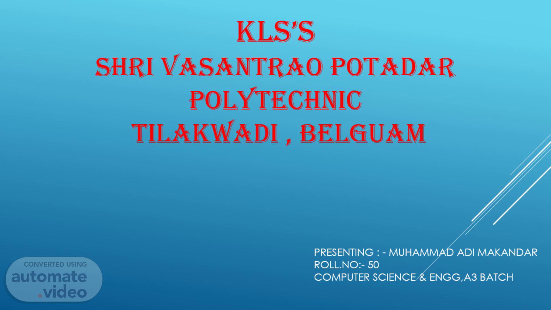 [Audio] KLS’S SHRI VASANTRAO POTADAR POLYTECHNIC TILAKWADI , BELGUAM PRESENTING : - MUHAMMAD ADI MAKANDAR ROLL.NO:- 50 COMPUTER SCIENCE & ENGG,A3 BATCH.