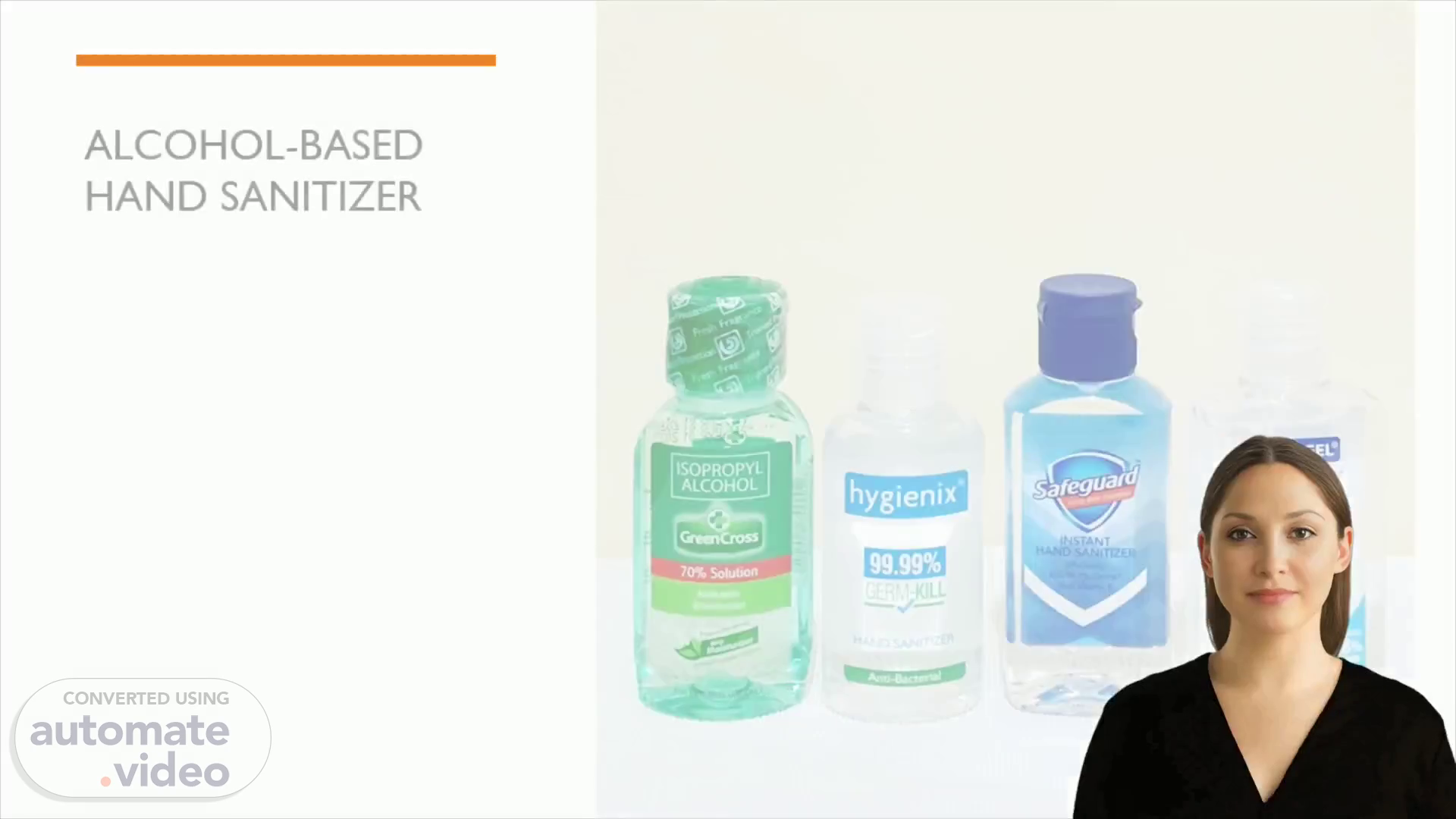 [Virtual Presenter] Good morning/afternoon/evening everyone! Today I am going to be presenting on Alcohol-based Hand Sanitizer. We will take an in-depth look at the benefits of using Alcohol-based Hand Sanitizer as well as the features of Microsoft PowerPoint and the various themes for your slides..