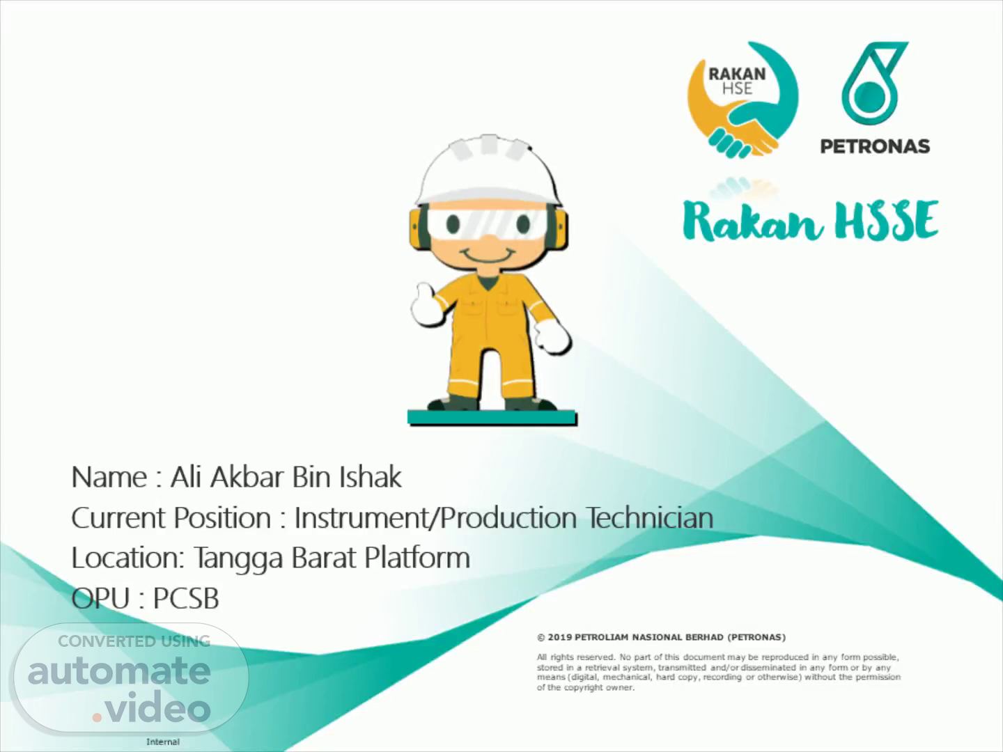 Rakan HSSE. Name : Ali Akbar Bin Ishak Current Position : Instrument/Production Technician Location: Tangga Barat Platform OPU : PCSB.