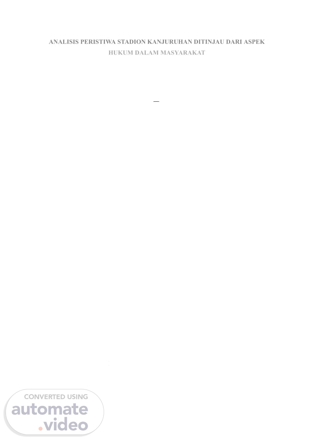 [Audio] ANALISIS PERISTIWA STADION KANJURUHAN DITINJAU DARI ASPEK HUKUM DALAM MASYARAKAT Disusun oleh : Saharani Anisa (202010415118) Selvy Ardella (202010415134) Tarisha Dwi Maharani Putri Purukan (202010415087) PROGRAM STUDI ILMU KOMUNIKASI FAKULTAS ILMU KOMUNIKASI UNIVERSITAS BHAYANGKARA JAKARTA RAYA 2023.