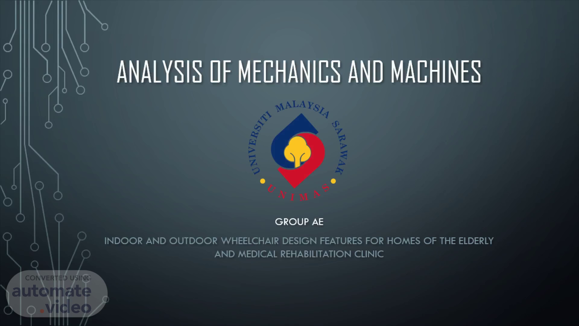 Analysis of mechanics and machines. Video presentation Group AE Daylouis Adailton Goh (74587) Hani Hazwani Binti Perlis (73480) Yong Qian Hao (77231) Petrus Cyril Mawat Anak Simon July (73784).