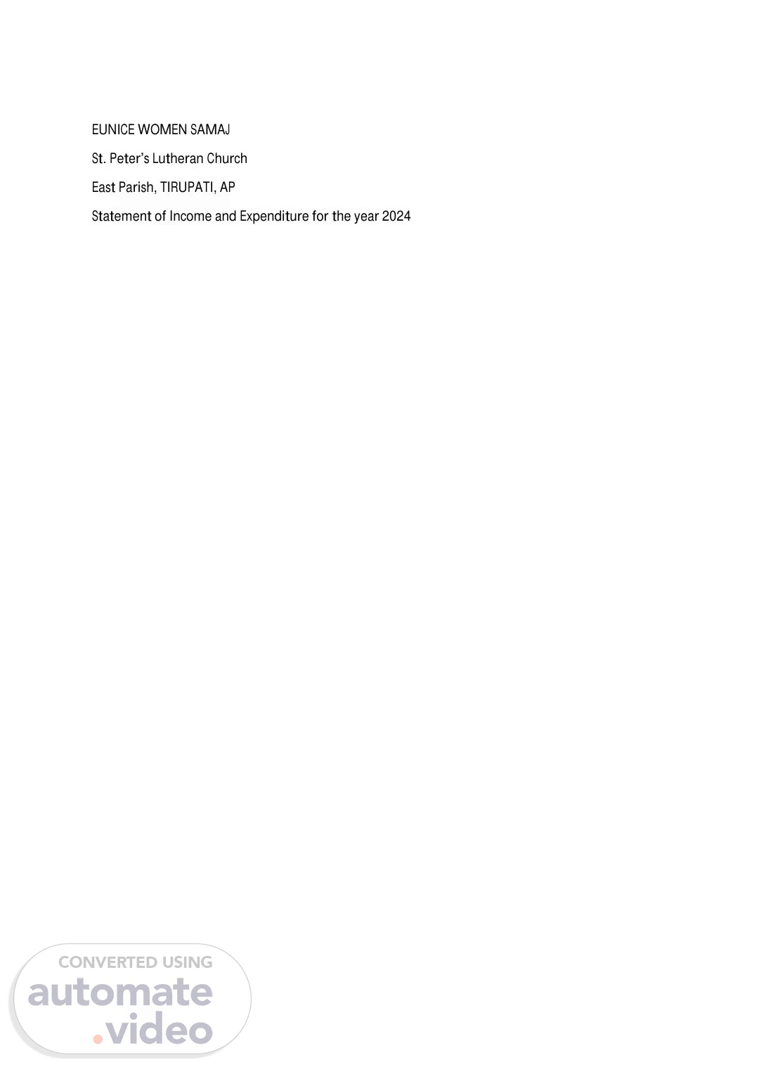 [Audio] EUNICE WOMEN SAMAJ St. Peter's Lutheran Church East Parish, TIRUPATI, AP Statement of Income and Expenditure for the year 2024.