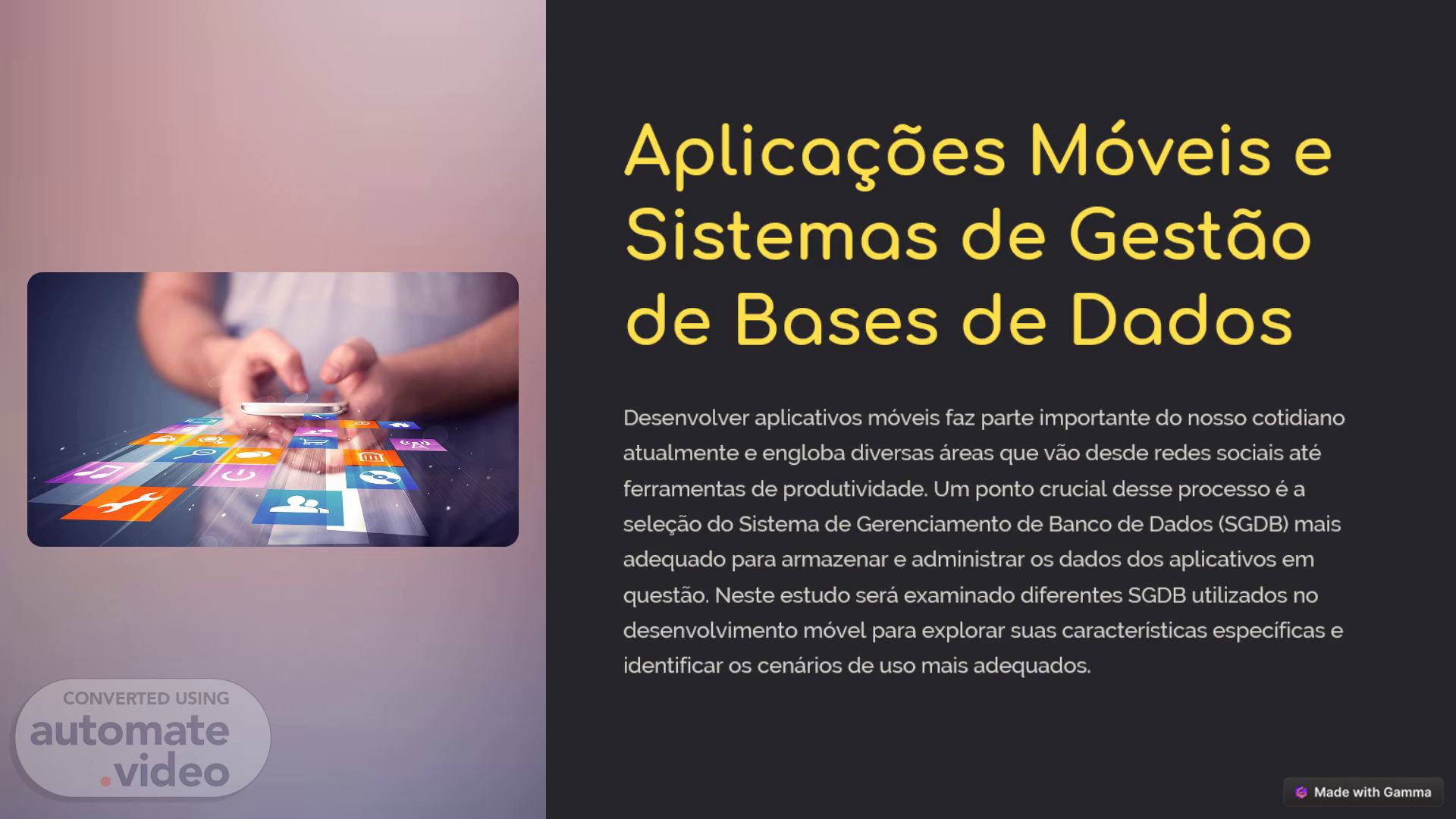 Aplicações Móveis e Sistemas de Gestão de Bases de Dados.