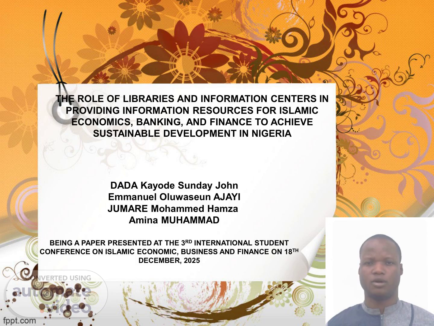 The Role Of Libraries And Information Centers In Providing Information Resources For Islamic Economics, Banking, And Finance To Achieve sustainable development IN nigeria dada Kayode Sunday John Emmanuel Oluwaseun ajayi jumare Mohammed Hamza Amina muhammad being A paper PRESENTED AT The 3RD INTERNATIONAL STUDENT Conference On Islamic Economic, Business And Finance On 18th December, 2025.