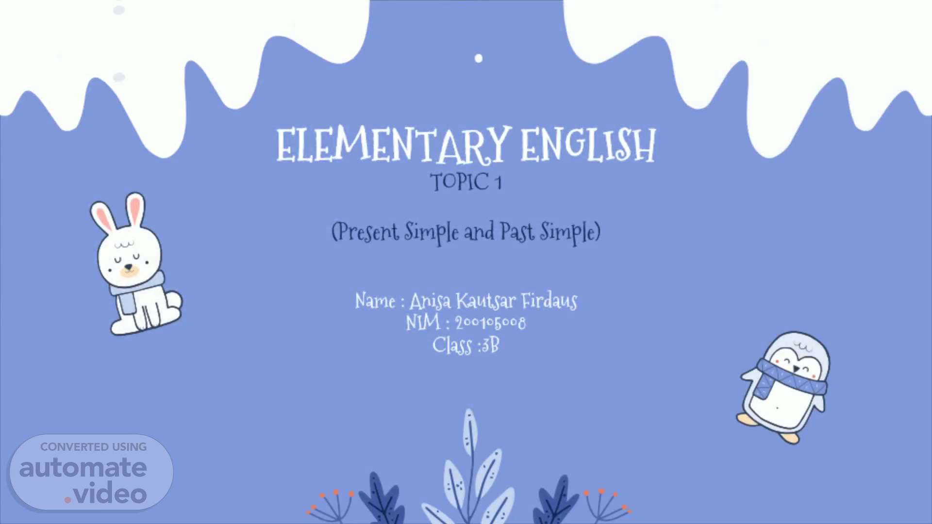 ELEMENTARY ENGLISH TOPIC 1 (Present Simple and Past Simple ) Name : Anisa Kautsar Firdaus NIM : 200105008 Class :3B.