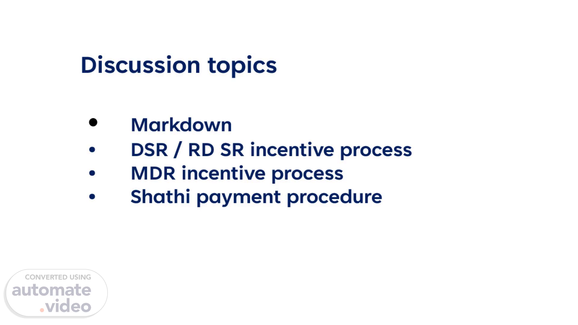 • Markdown • DSR / RD SR incentive process • MDR incentive process • Shathi payment procedure.