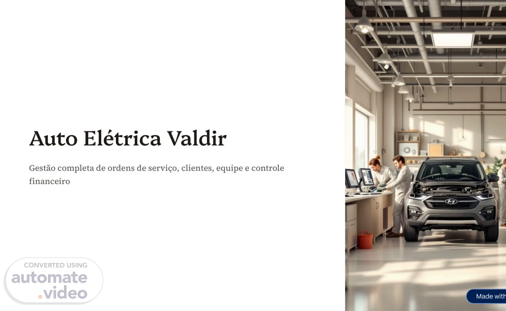 Auto Elétrica Valdir Gestão completa de ordens de serviço, clientes, equipe e controle financeiro.