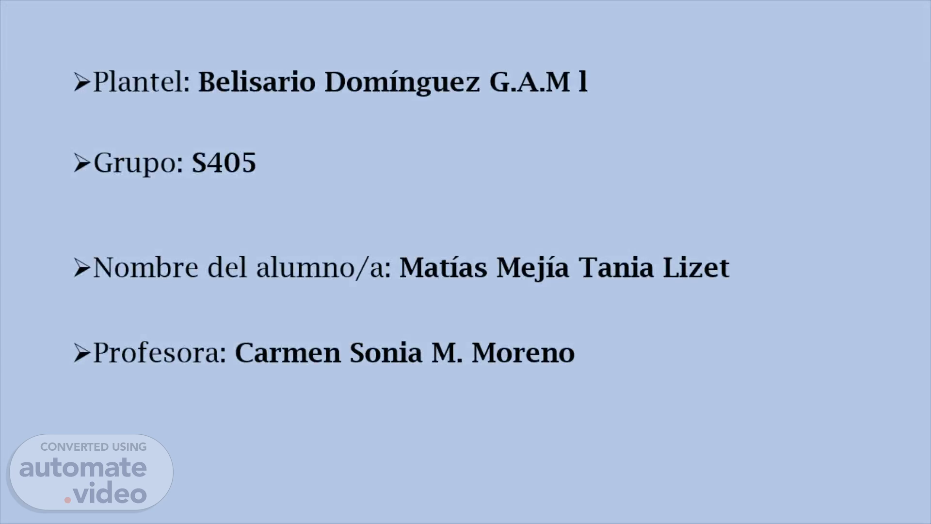 Plantel: Belisario Domínguez G.A.M l Grupo: S405 Nombre del alumno/a: Matías Mejía Tania Lizet Profesora: Carmen Sonia M. Moreno.