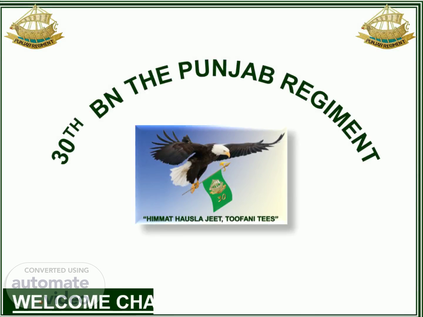 "HIMMAT HAUSLA JEET, TOOFANI TEES". 30 TH BN THE PUNJAB REGIMENT.