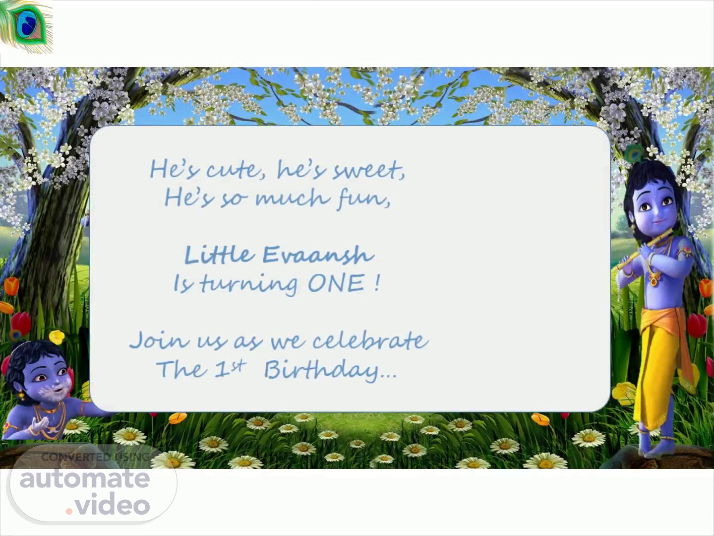 The pleasure of your company is required at the 1st Birthday celebration of Evaansh As per program.