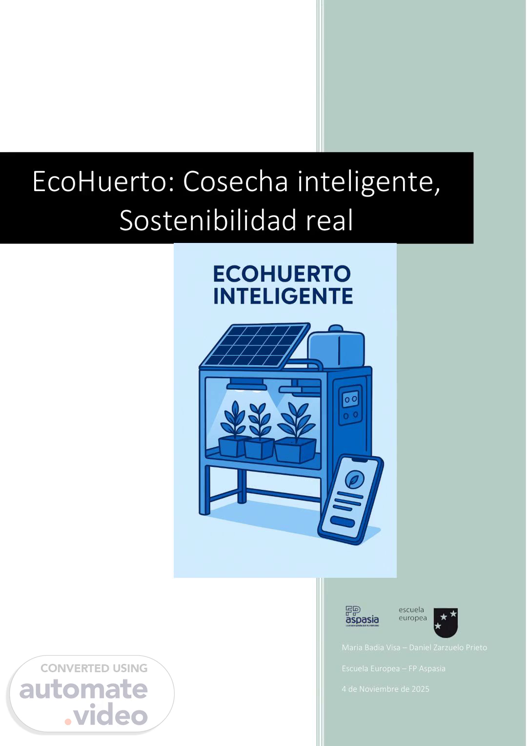 [Audio] EcoHuerto: Cosecha inteligente, Sostenibilidad real Maria Badia Visa – Daniel Zarzuelo Prieto Escuela Europea – FP Aspasia 4 de Noviembre de 2025.