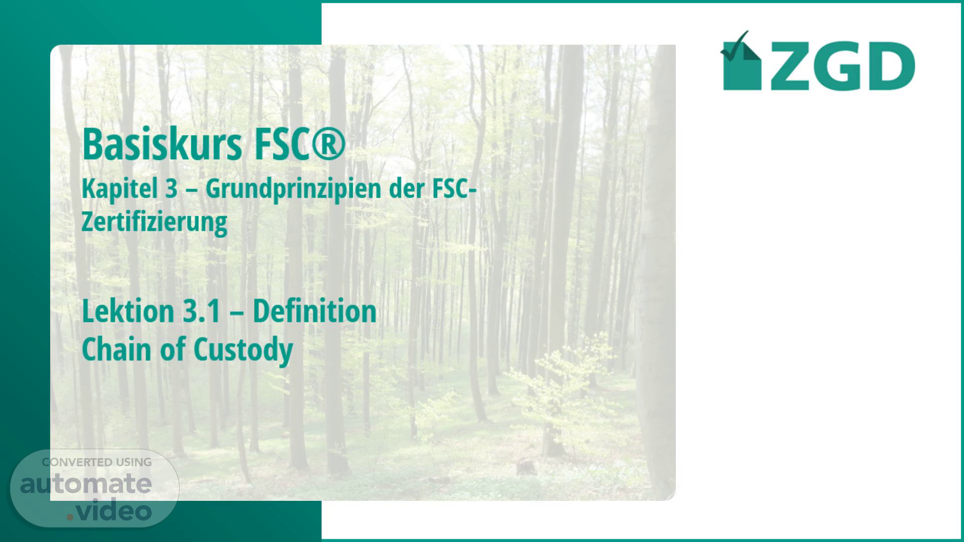 [Audio] Willkommen beim Basiskurs FSC. Wir sind in Kapitel 3 und beginnen mit Lektion 1 zur Definition der Chain of Custody..