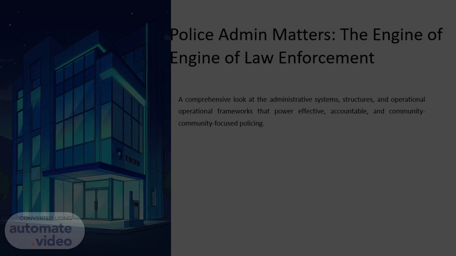 [Audio] Police Admin Matters: The Engine of Law Enforcement A comprehensive look at the administrative systems, structures, and operational frameworks that power effective, accountable, and community-focused policing. OPERATIONAL READINESS LAW ENFORCEMENT EXCELLENCE "Good day everyone. Today, I will be presenting Police Administrative Matters: The Engine of Law Enforcement. When people think about police work, they usually imagine officers responding to emergencies, investigating crimes, or patrolling the streets. However, behind every successful police operation is a strong administrative system that keeps the entire organization functioning. Police administration is responsible for managing personnel, records, budgeting, logistics, training, and policy implementation. These responsibilities may not always be visible to the public, but they play a critical role in maintaining effective and professional law enforcement. This presentation will provide a comprehensive look at the administrative systems, organizational structures, and operational frameworks that help police departments deliver efficient service, maintain accountability, and build trust within the community. By the end of this presentation, we will better understand why police administration is truly the engine that drives law enforcement excellence and operational readiness.".