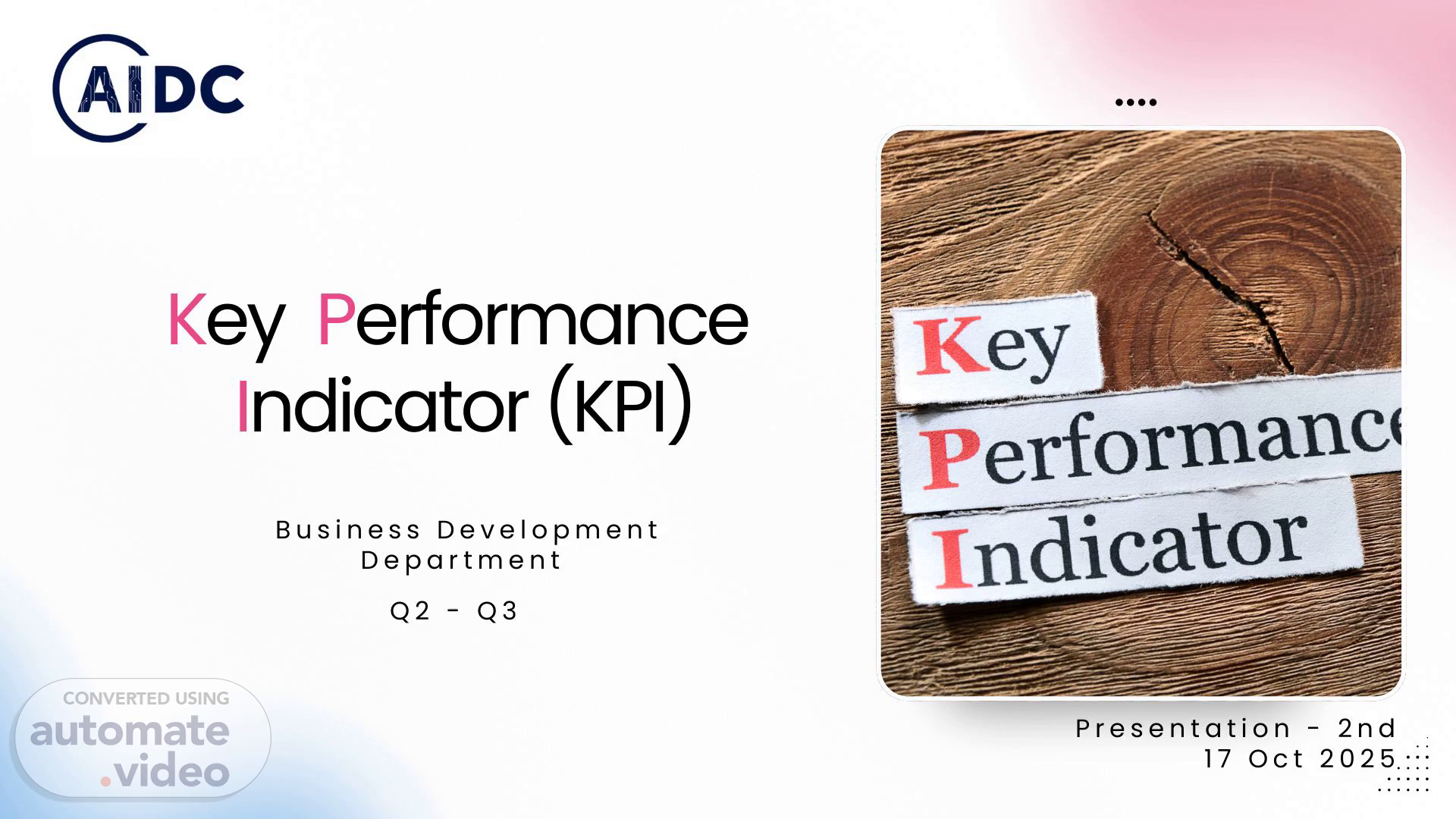 Key Performance Indicator (KPI) P r e s e n t a t i o n - 2 n d 1 7 O c t 2 0 2 5 B u s i n e s s D e v e l o p m e n t D e p a r t m e n t Q 2 - Q 3.