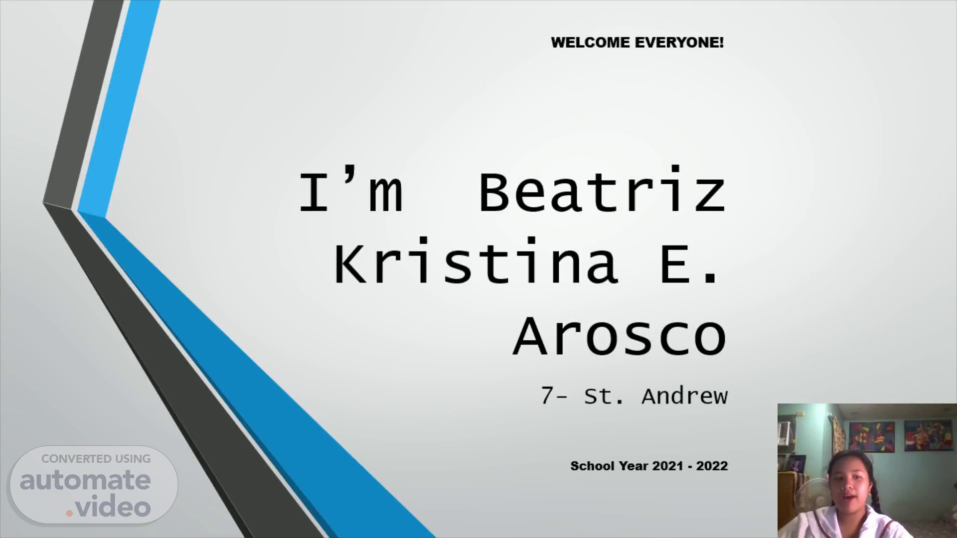 WELCOME EVERYONE!. I’m Beatriz Kristina E. Arosco 7- St. Andrew School Year 2021 - 2022.