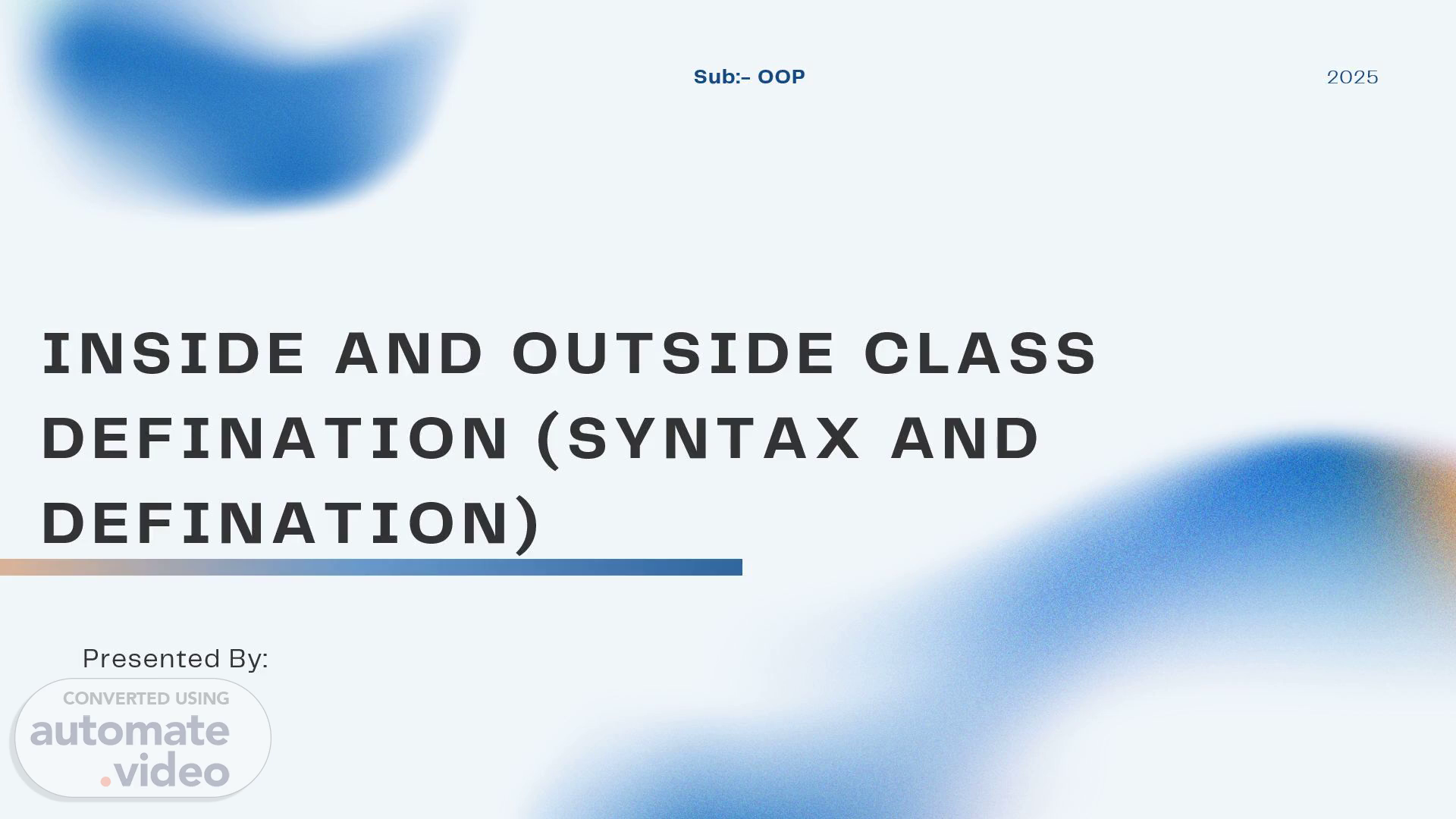 [Audio] Sub: O-O-P Inside And Outside Class Defination (syntax And Defination) Presented By: Bhushan Dongarwar.