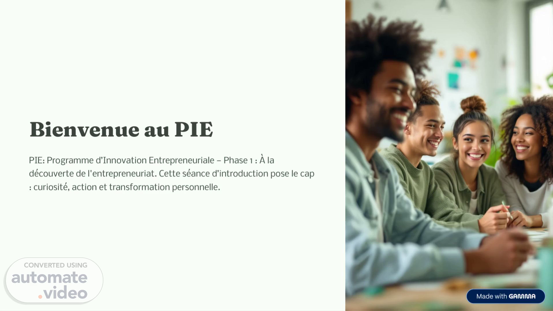[Audio] Bie�ve�ue au PIE PIE: Programme d9Innovation Entrepreneuriale 4 Phase 1 : À la découverte de l'entrepreneuriat. Cette séance d9introduction pose le cap : curiosité, action et transformation personnelle..