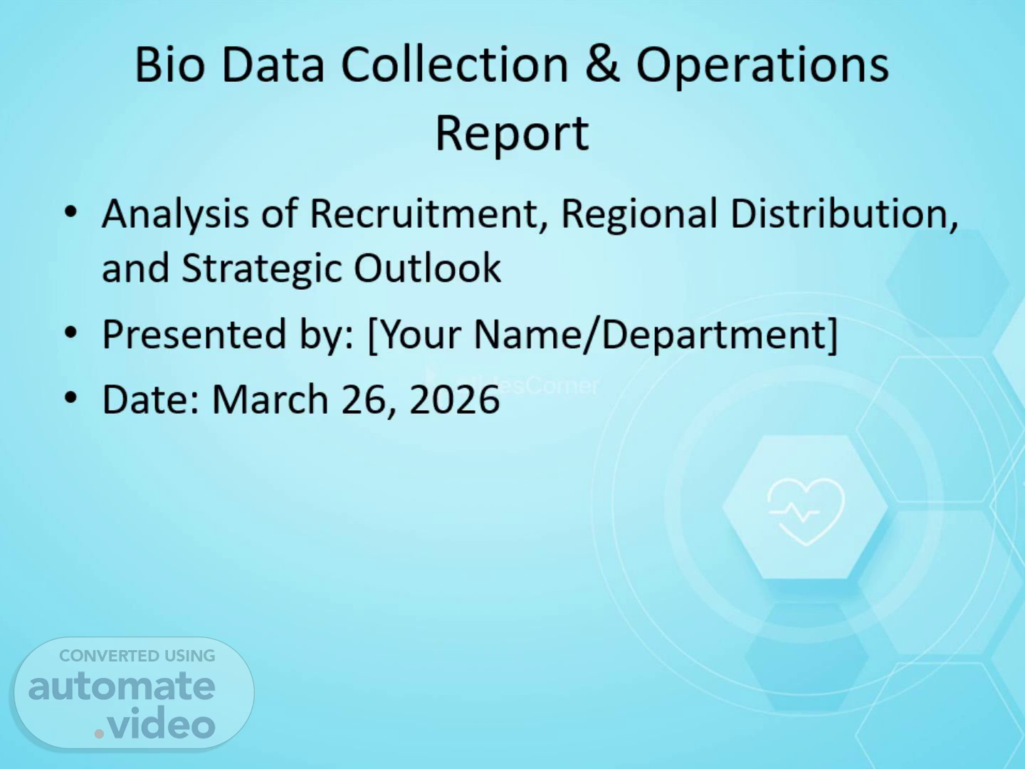 [Audio] Bio Data Collection & Operations Report Analysis of Recruitment, Regional Distribution, and Strategic Outlook Presented by: [Your Name/Department] Date: March 26, 2026.