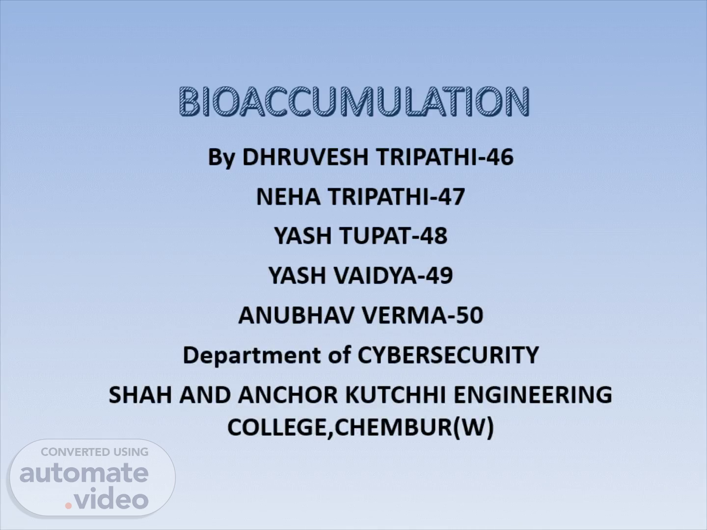BIOACCUMULATION. By DHRUVESH TRIPATHI-46 NEHA TRIPATHI-47 YASH TUPAT-48 YASH VAIDYA-49 ANUBHAV VERMA-50 Department of CYBERSECURITY SHAH AND ANCHOR KUTCHHI ENGINEERING COLLEGE,CHEMBUR(W).