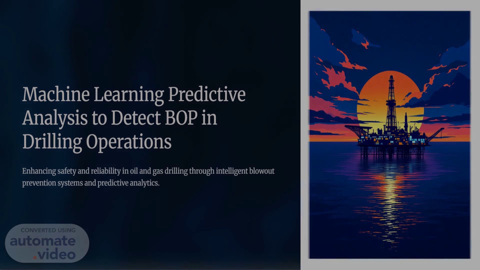 [Audio] . Machine Learning Predictive Analysis to Detect BOP in Drilling Operations Enhancing safety and reliability in oil and gas drilling through intelligent blowout prevention systems and predictive analytics. 011.
