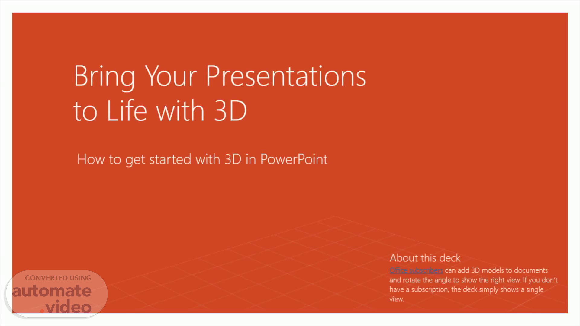 [Audio] [break]%. No 3D Model? No Problem!. Microsoft makes it easy to insert a 3D Model! Simply go to the Insert Ribbon and click on the 3D Models option. Choose the option for online sources gallery (shown at the right). Select the model you wish to insert. 3D Models is a subscription-only feature. If you have a subscription, the next slide shows you how it works in a new presentation..