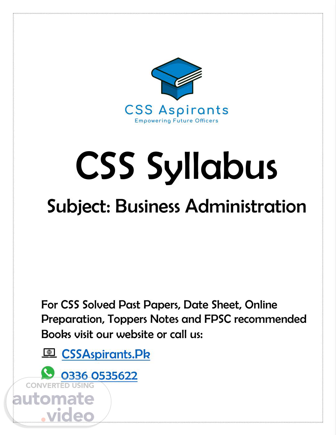 [Audio] CSS Syllabus Subject: Business Administration For CSS Solved Past Papers, Date Sheet, Online Preparation, Toppers Notes and FPSC recommended Books visit our website or call us: CSSAspirants.Pk 0336 0535622.