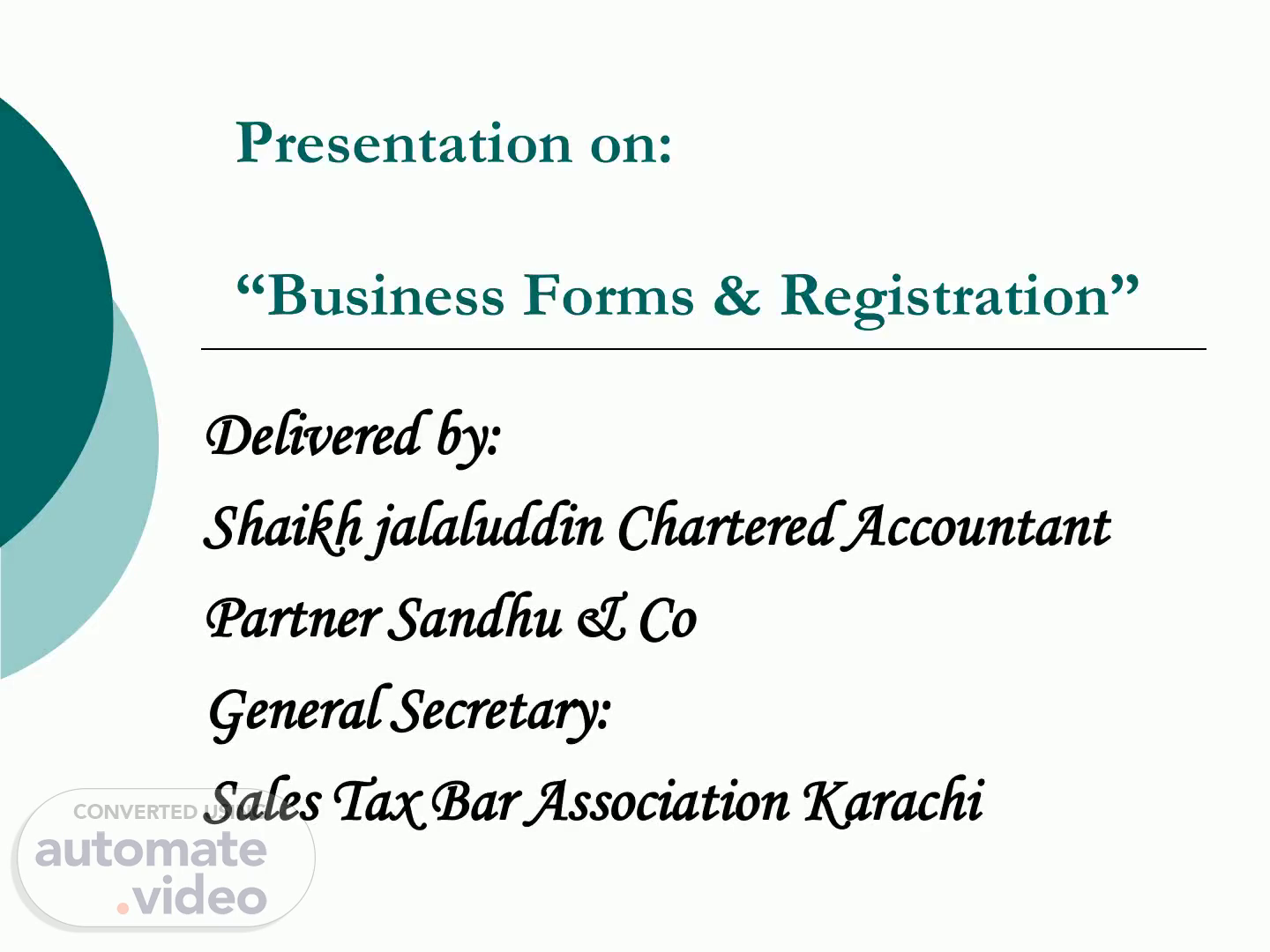 [Audio] Presentation on: " Business Forms & Registration" Delivered by: Shaikh jalaluddin Chartered Accountant Partner Sandhu & Co General Secretary: Sales Tax Bar Association Karachi.