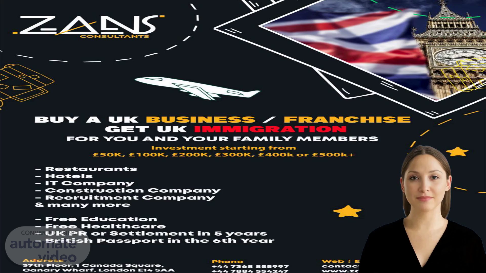 [Virtual Presenter] Good day everyone, I'm here to give you a comprehensive overview of the services provided by The ZANS Group UK Ltd & ZANS Immigration Consultants. We will be discussing the UK population, its projections, Tory and Labour party policies, industry attractiveness, and more. Let's get started..