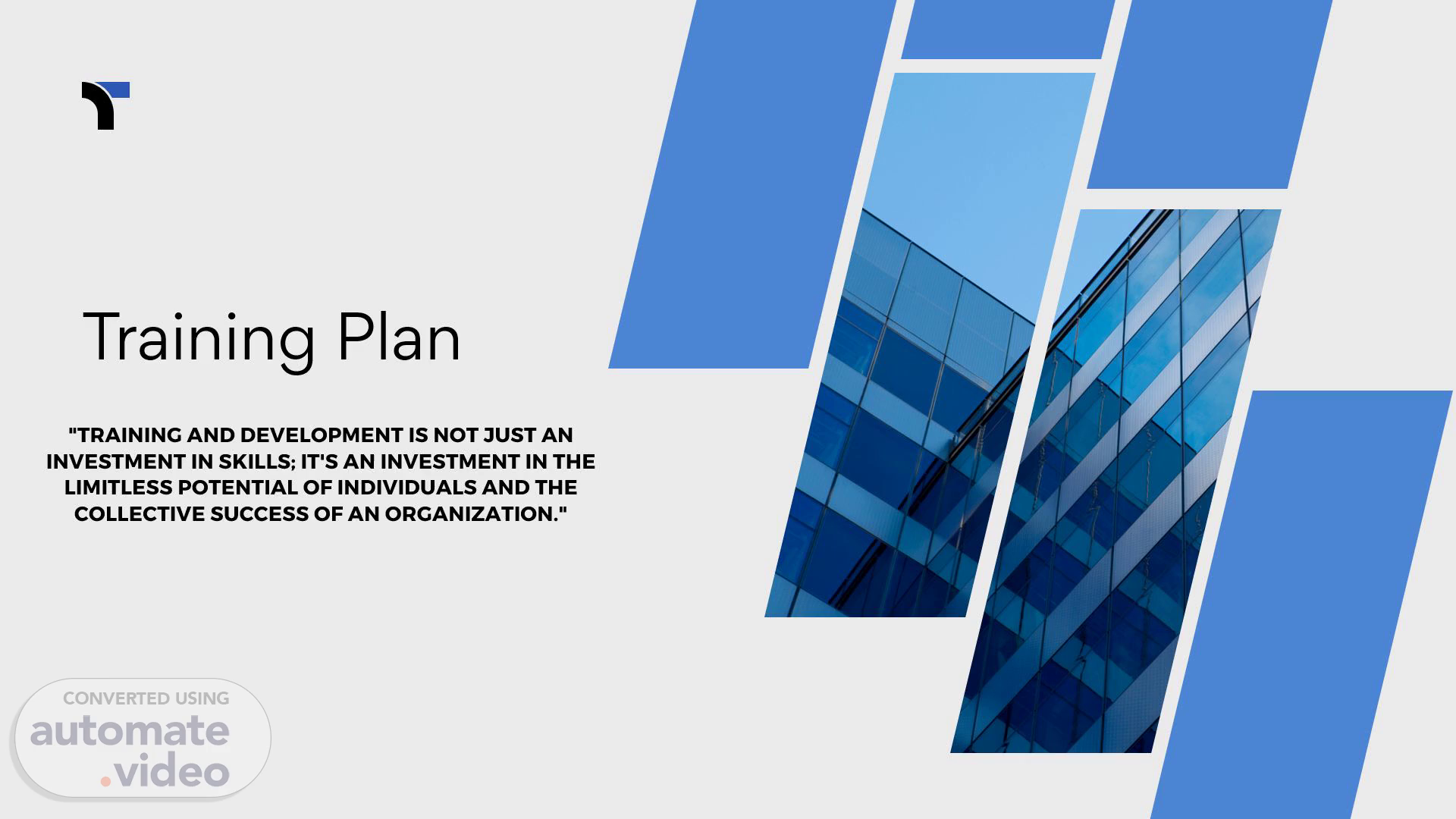 [Audio] Our company puts great emphasis on training and development as a means to invest in the ongoing education of employees. Following the quote, it is not just an investment in skills but in the potential of each individual. We recognize that a well-trained staff can help us reach our objectives. Thus, we have taken the initiative to give our employees resources to reach their potential. We are starting now, creating a strong base of knowledge and experience that can help us reach our goals..