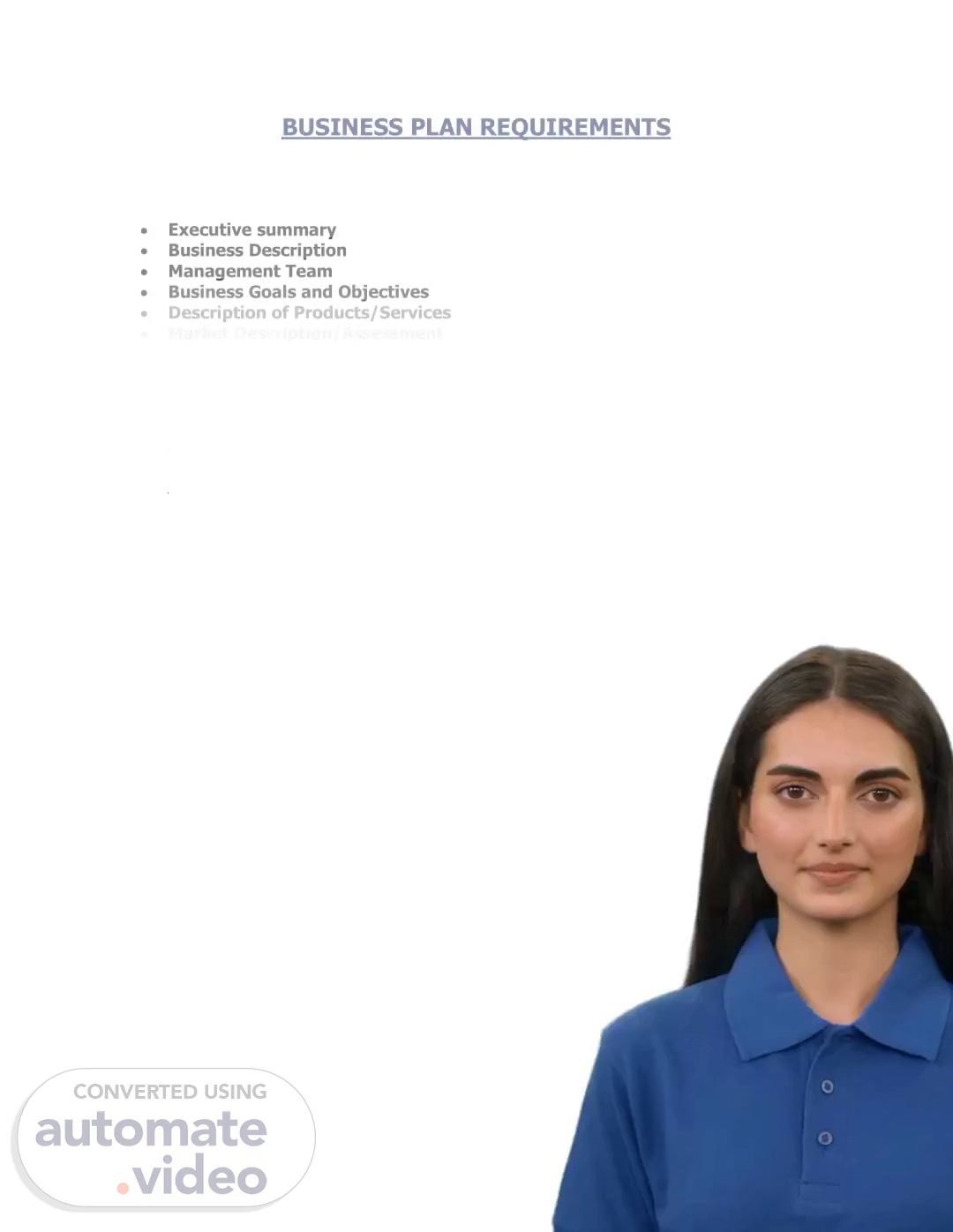 [Virtual Presenter] Good evening, everyone. Today, I will be presenting an overview of the business plan requirements for a successful venture. We'll be covering executive summaries, business descriptions, management teams, goals and objectives, products and services, markets, SWOT analyses, marketing plans, sales plans, operations, locations, technology, and financial plans. I'm confident you'll find this overview very useful for your own business plans. Let's get started..