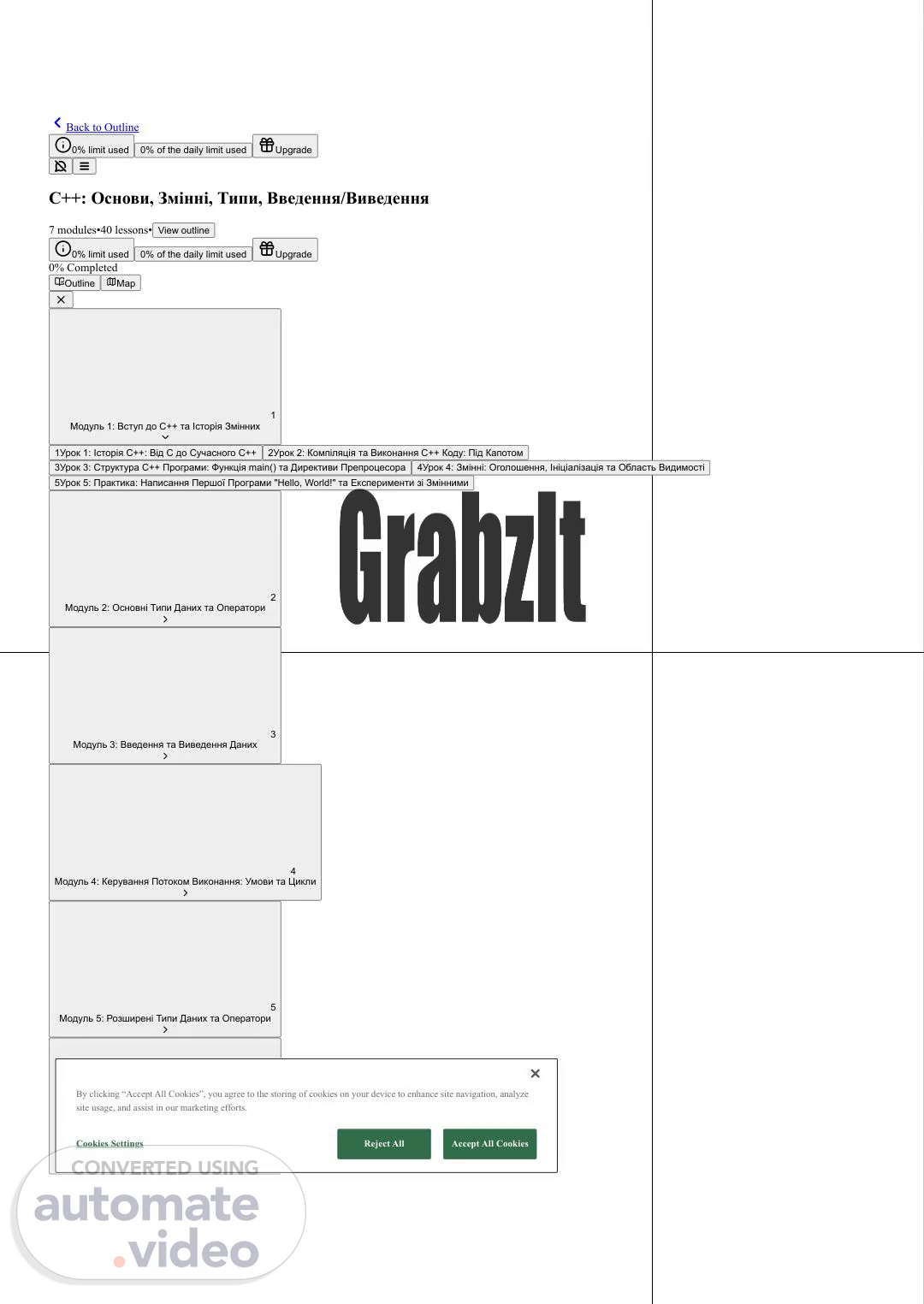 Back to Outline 0% limit used Upgrade C++: Основи, Змінні, Типи, Введення/Виведення 7 modules•40 lessons• View outline 0% limit used Upgrade 1Урок 1: Історія C++: Від C до Сучасного C++ 2Урок 2: Компіляція та Виконання C++ Коду: Під Капотом 3Урок 3: Структура C++ Програми: Функція main() та Директиви Препроцесора 4Урок 4: Змінні: Оголошення, Ініціалізація та Область Видимості 5Урок 5: Практика: Написання Першої Програми "Hello, World!" та Експерименти зі Змінними 0% of the daily limit used 0% of the daily limit used Outline Map 0% Completed Модуль 1: Вступ до C++ та Історія Змінних 1 Модуль 2: Основні Типи Даних та Оператори 2 Модуль 3: Введення та Виведення Даних 3 Модуль 4: Керування Потоком Виконання: Умови та Цикли 4 Модуль 5: Розширені Типи Даних та Оператори 5 Модуль 6: Вказівники та Управління Пам'яттю 6 By clicking “Accept All Cookies”, you agree to the storing of cookies on your device to enhance site navigation, analyze site usage, and assist in our marketing efforts. Reject All Accept All Cookies Cookies Settings.