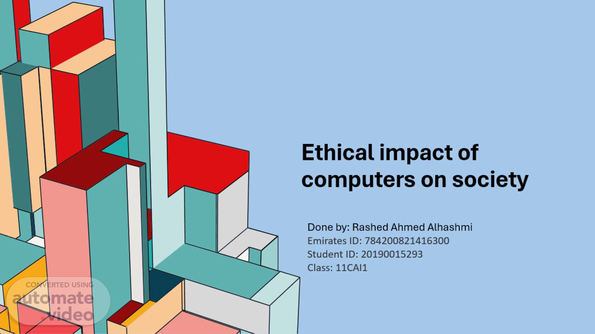 [Audio] Ethical impact of computers on society Done by: Rashed Ahmed Alhashmi Emirates ID: 784200821416300 Student ID: 20190015293 Class: 11CAI1.