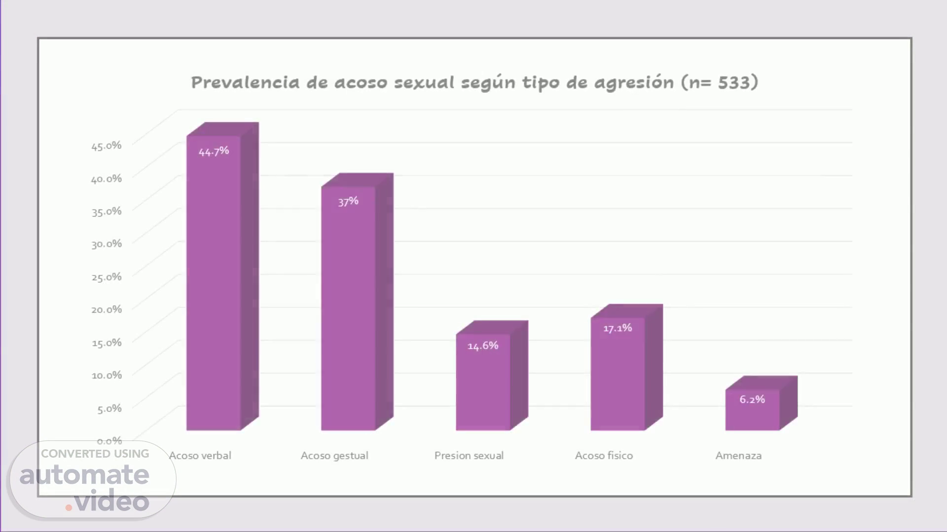 Porcentaje Acoso verbal Acoso gestual Presion sexual Acoso fisico Amenaza 0.44700000000000001 0.37 0.14599999999999999 0.17100000000000001 6.2E-2.