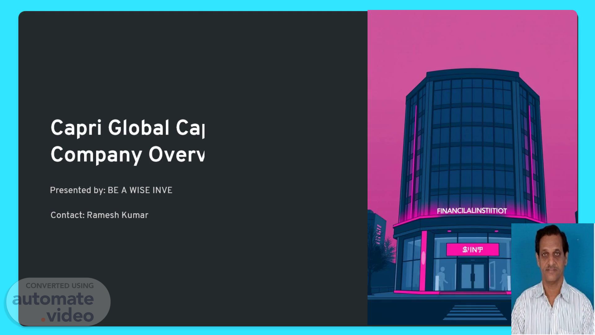 [Audio] Today, we will be discussing Capri Global Capital Ltd, a leading Non-Banking Financial Company in India. Founded in 1997, our company has become one of the most trusted names in the financial sector. Capri Global Capital Ltd is a publicly listed company on the major Indian stock exchanges - NSE and BSE, showing our strong financial performance and commitment to transparency. Our headquarters are located in Mumbai, the financial capital of India, allowing us to have a strong presence in the dynamic financial market of the country. Our esteemed promoter, Mr. Rajesh Sharma, brings a wealth of experience and expertise in the financial industry. Under his leadership, Capri Global Capital Ltd consistently delivers positive results and thrives in a competitive market. At the core of our business, we have a strong focus on driving financial inclusion and SME lending across India. Through our innovative and customer-centric approach, we are dedicated to providing financial support and solutions to those in need. Thank you for your attention..