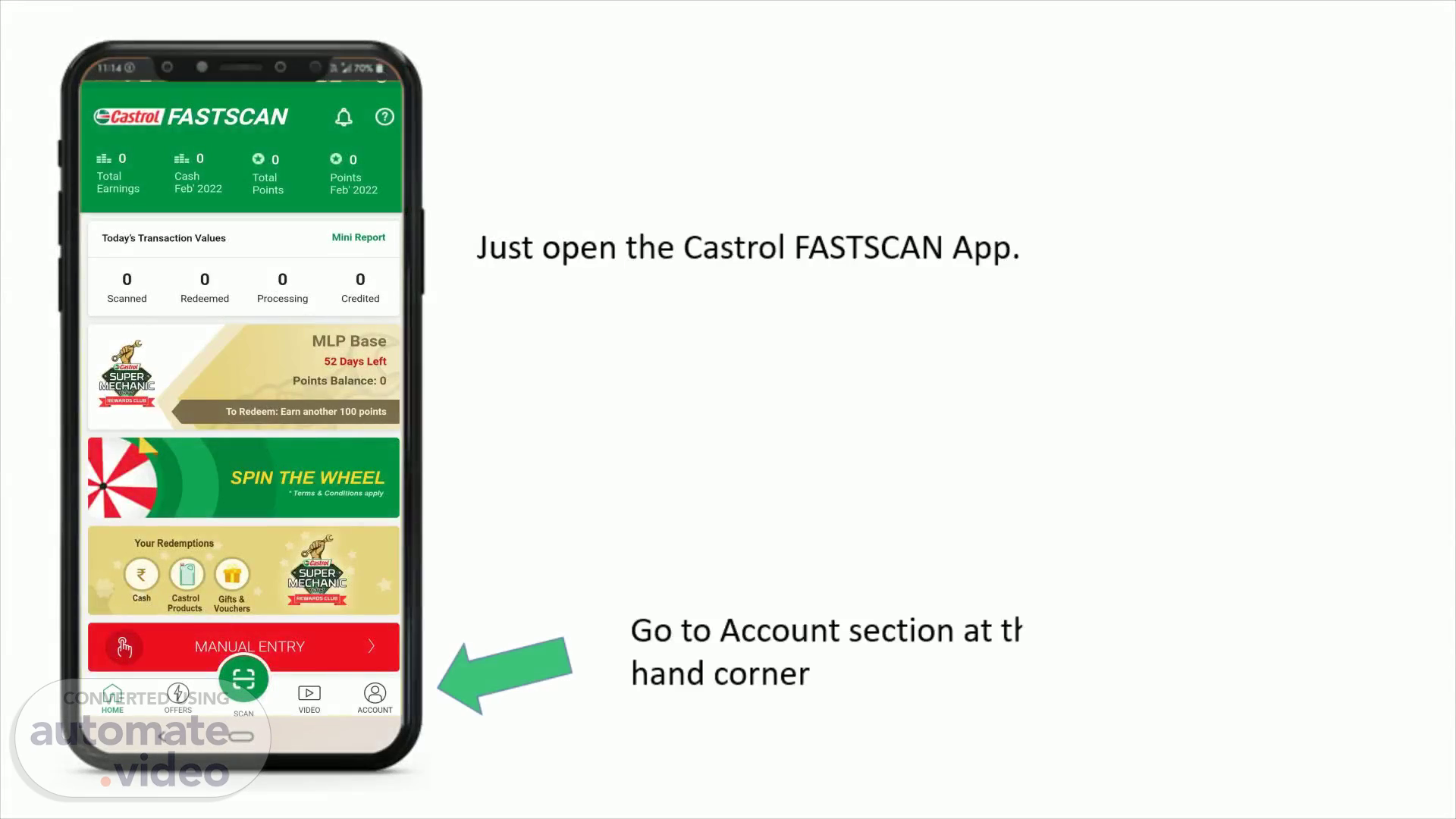 5:19 0 FASTSCAN e Castrol Total Earnings Cash Feb' 2022 Todays Transaction Values Total Points processing 78% O Points Feb' Mini Report Credited Scanned SUPER CHA Redeemed MLP Base 52 Days Left Points Balance: O To Redeem: Eam another 100 points SPIN THE WHEEL • Terms conditions apply Your Cash Castrol Gifts & Products Vouchers SUPER ECHA MANUAL ENTRY OFFERS VIDEO ACCOUNT SCAN.