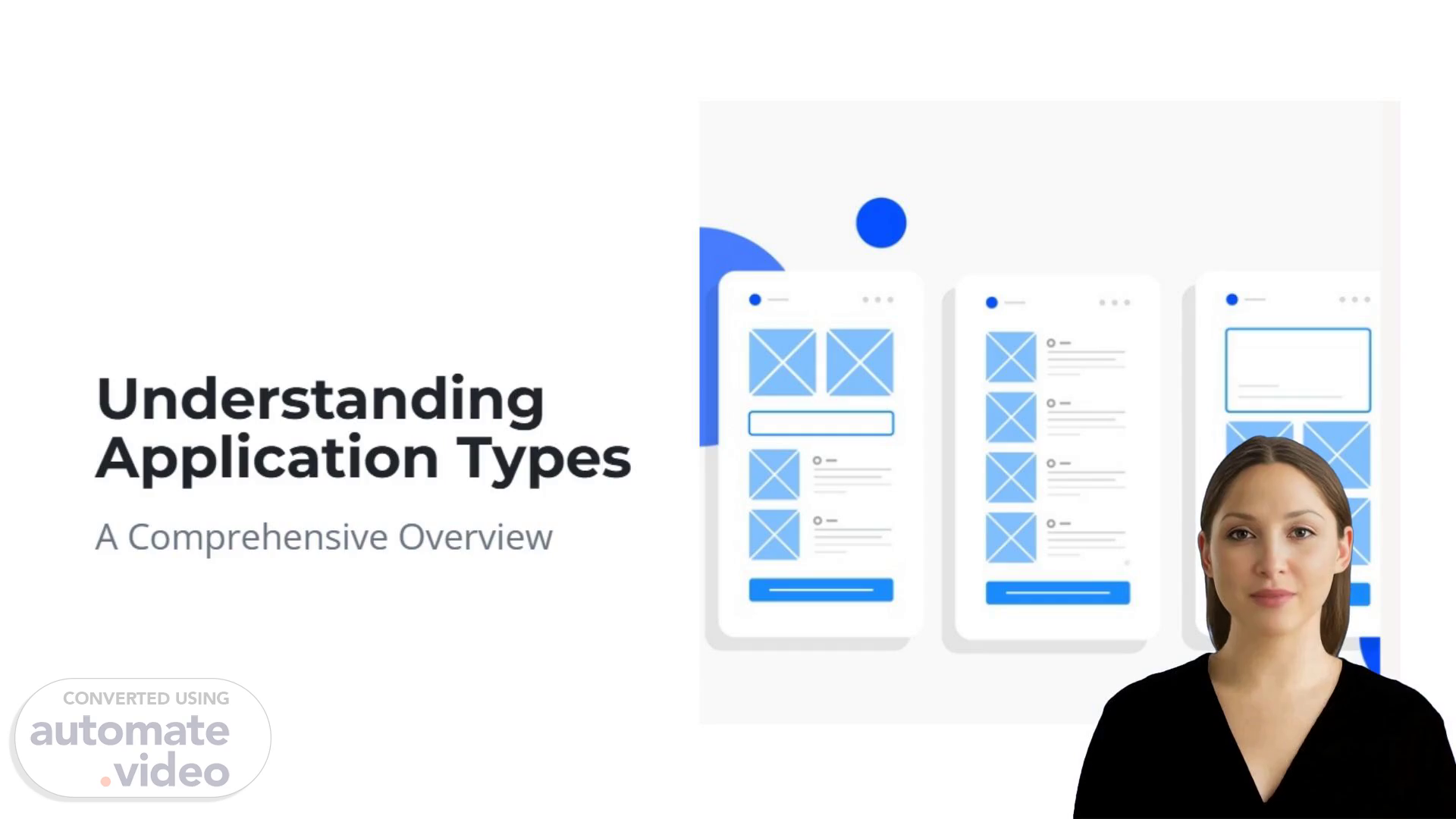 [Virtual Presenter] Application Types: A Comprehensive Overview Various categories of software applications exist, including productivity tools, games, educational resources, and more. Productivity tools help users manage tasks, organize data, and streamline workflows. Games are designed to entertain and engage users, while educational resources aim to teach new skills and knowledge. Other categories include multimedia applications, business applications, and utility software. Each type of application has its own unique characteristics and uses. Understanding these differences is essential for making informed decisions when selecting an application. By exploring the various categories of applications, users can identify the most suitable tool for their specific needs..