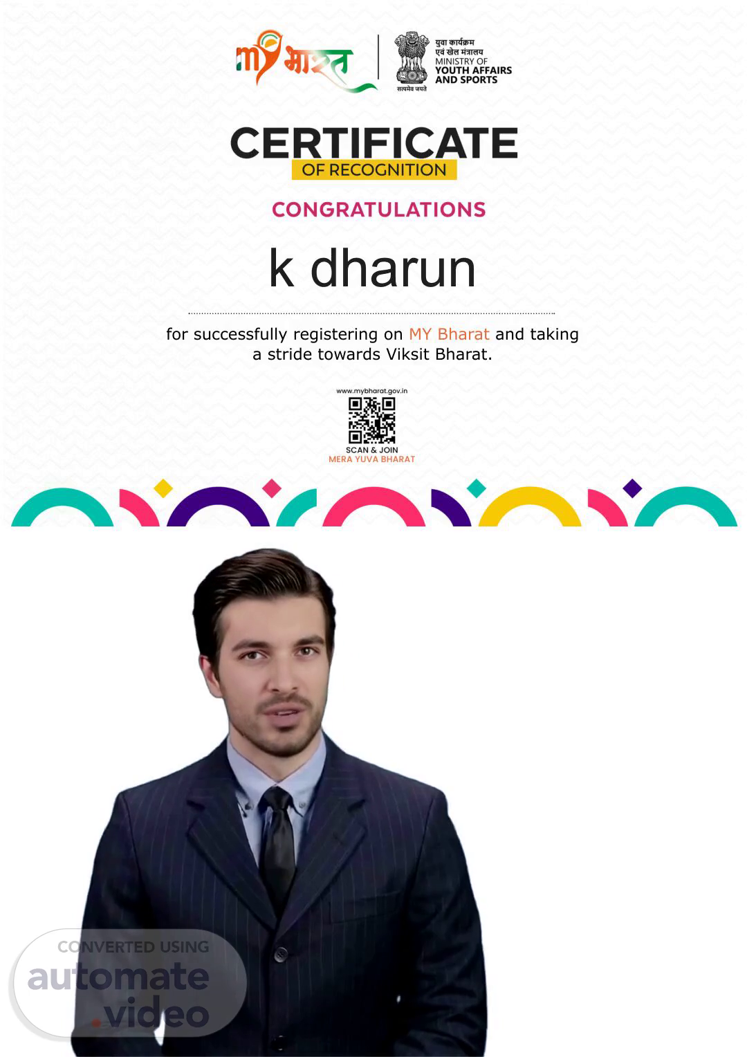 [Virtual Presenter] k�dharun for�successfully�registering�on�MY�Bharat�and�taking a�stride�towards�Viksit�Bharat..