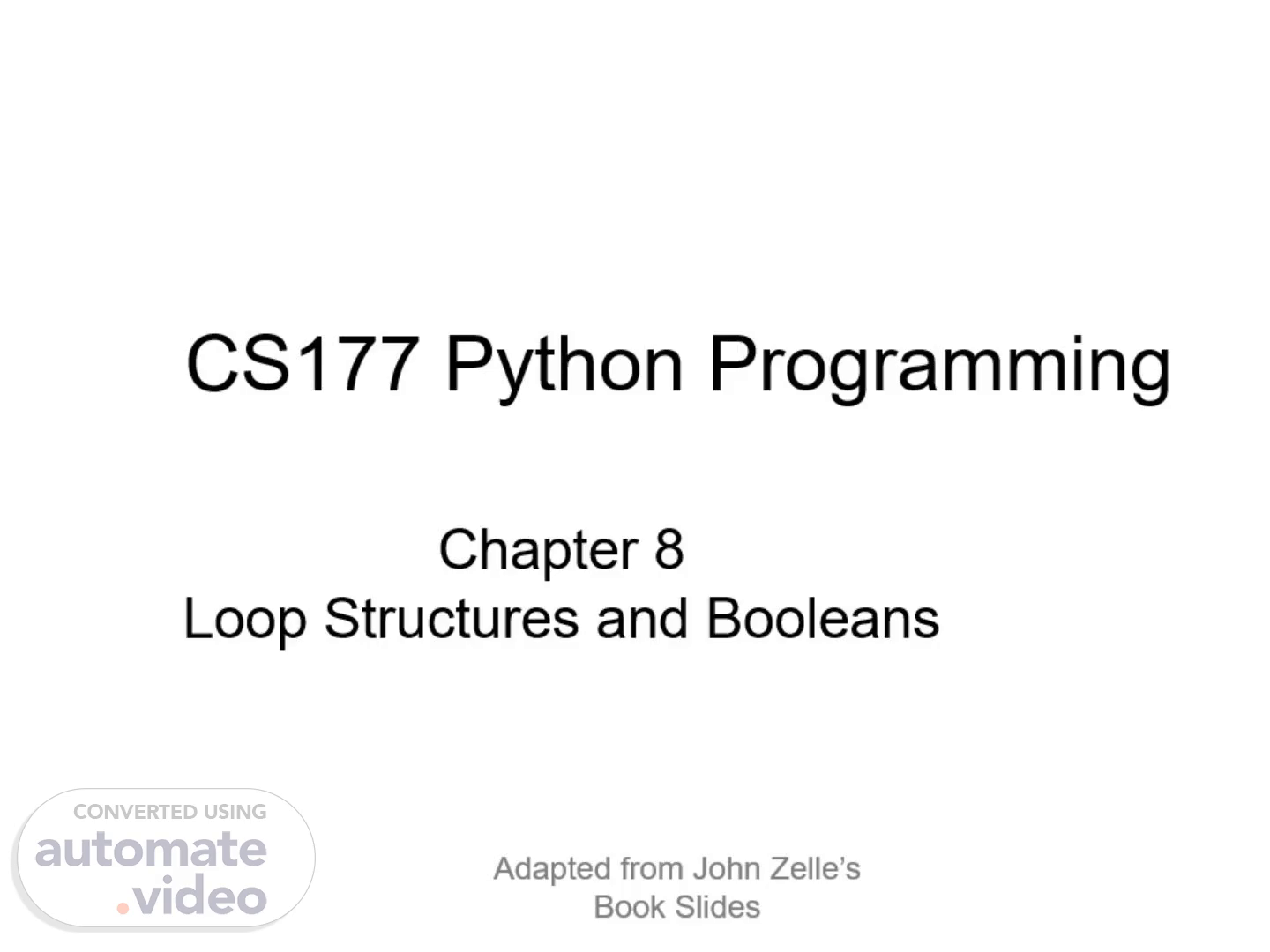 [Audio] CS177 Python Programming Chapter 8 Loop Structures and Booleans Adapted from John Zelle’s Book Slides.