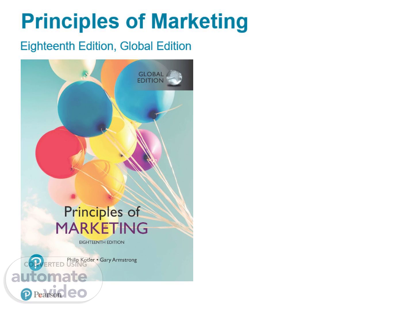 Principles of Marketing. Eighteenth Edition, Global Edition.