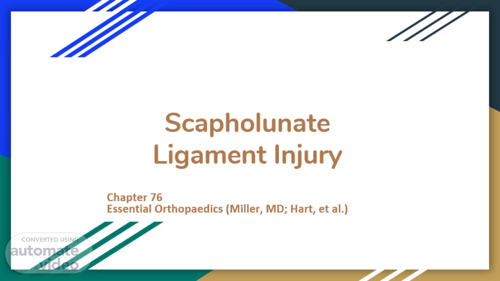 Scapholunate Ligament Injury. Chapter 76 Essential Orthopaedics (Miller, MD; Hart, et al.).