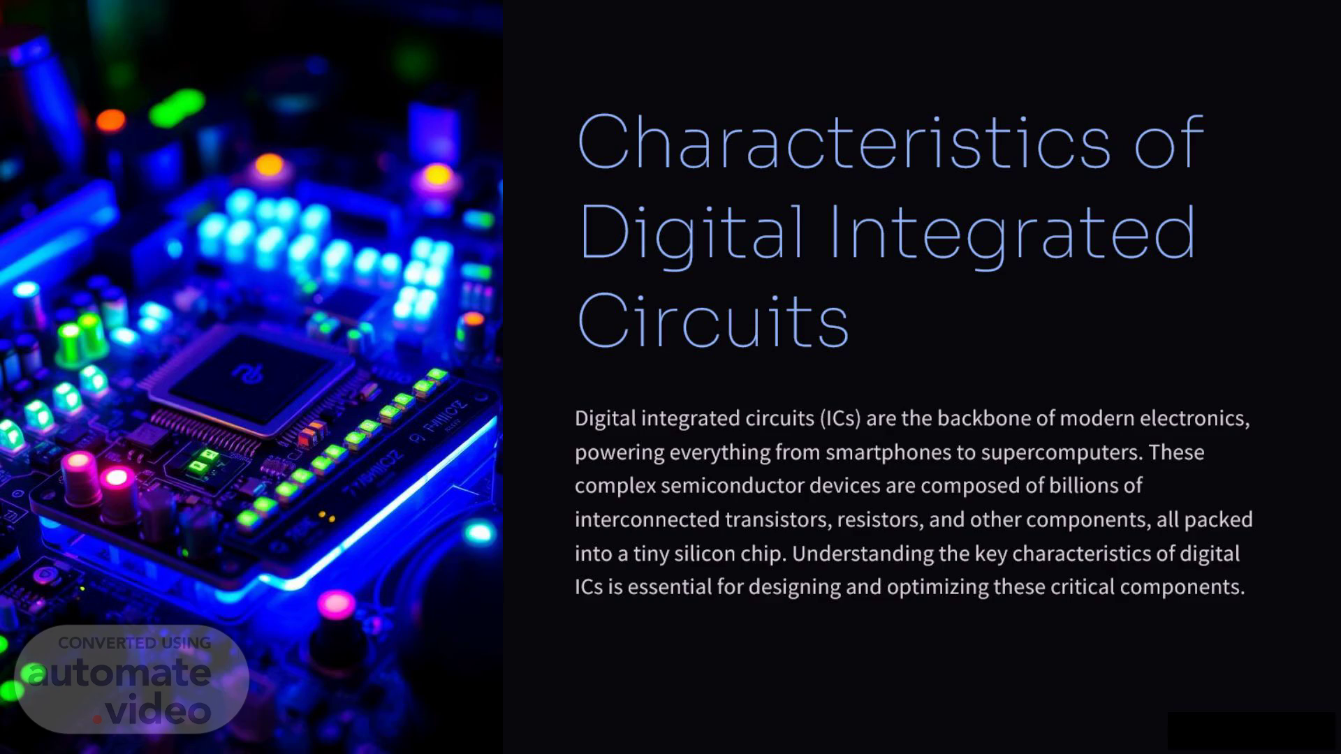 [Audio] Characteristics of Digital Integrated Circuits Digital integrated circuits (ICs) are the backbone of modern electronics, powering everything from smartphones to supercomputers. These complex semiconductor devices are composed of billions of interconnected transistors, resistors, and other components, all packed into a tiny silicon chip. Understanding the key characteristics of digital ICs is essential for designing and optimizing these critical components..