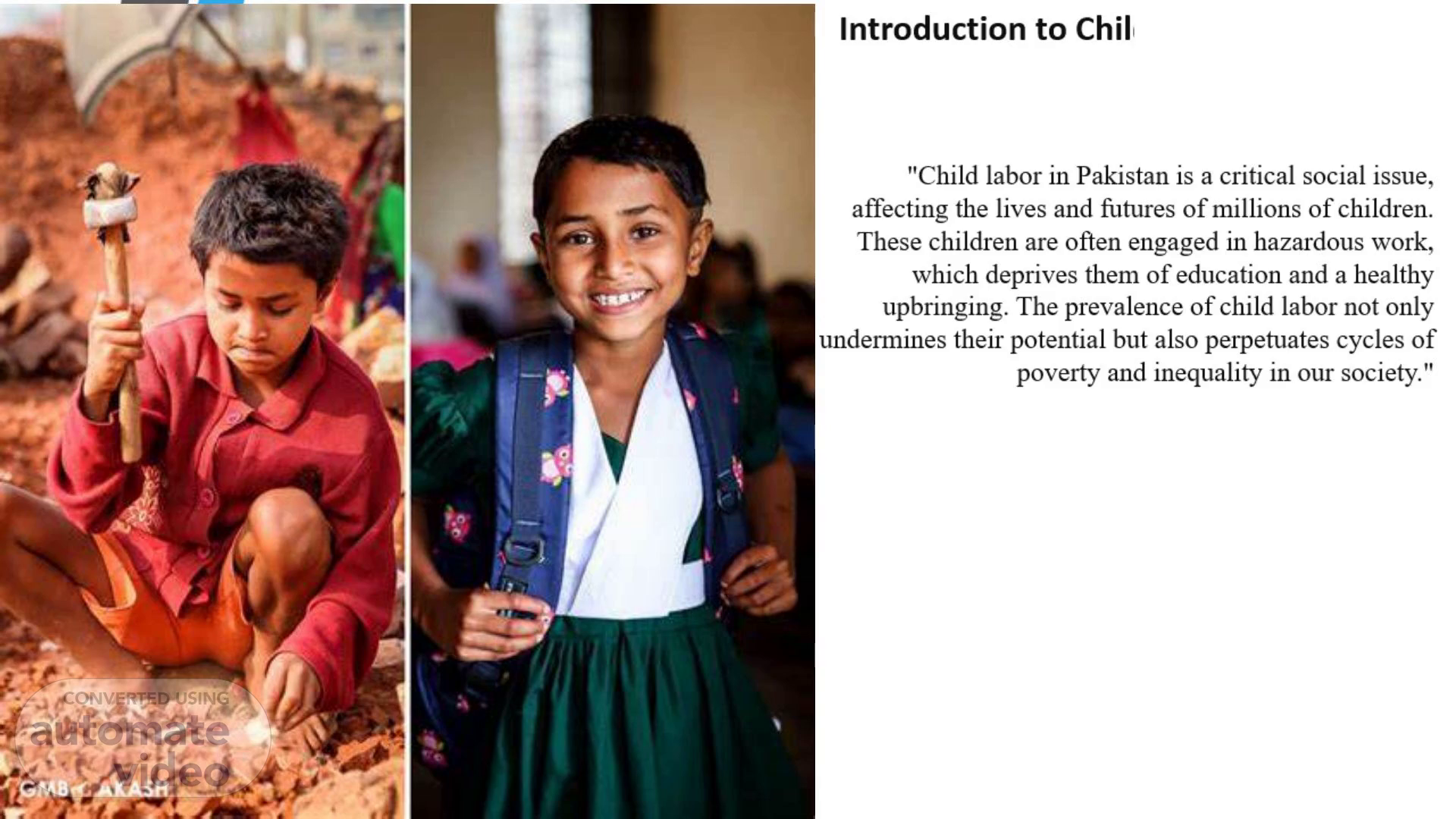 "Child labor in Pakistan is a critical social issue, affecting the lives and futures of millions of children. These children are often engaged in hazardous work, which deprives them of education and a healthy upbringing. The prevalence of child labor not only undermines their potential but also perpetuates cycles of poverty and inequality in our society.".
