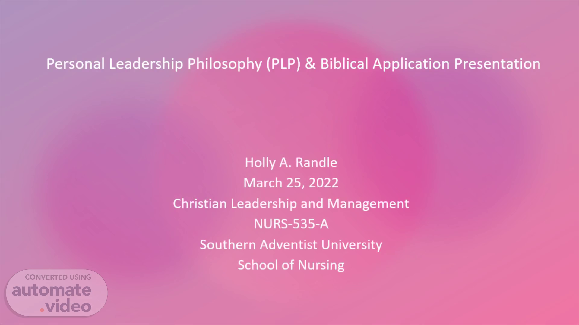 Personal Leadership Philosophy (PLP) & Biblical Application Presentation.