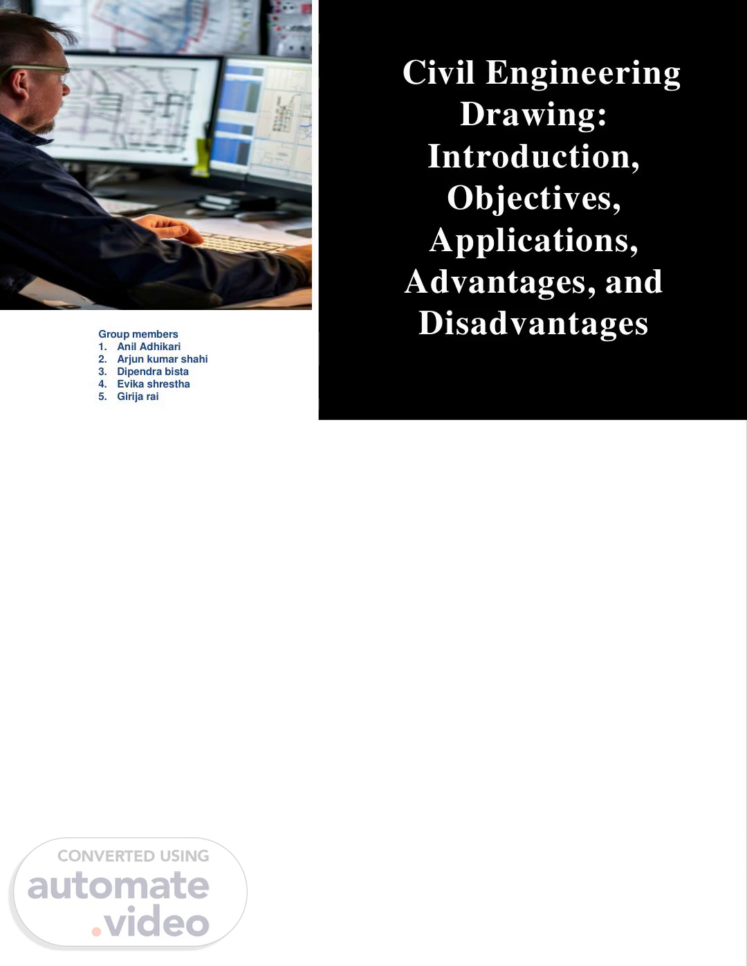 [Virtual Presenter] Civil Engineering Drawing: Introduction, Objectives, Applications, Advantages, and Disadvantages Group members 1. Anil Adhikari 2. Arjun kumar shahi 3. Dipendra bista 4. Evika shrestha 5. Girija rai.