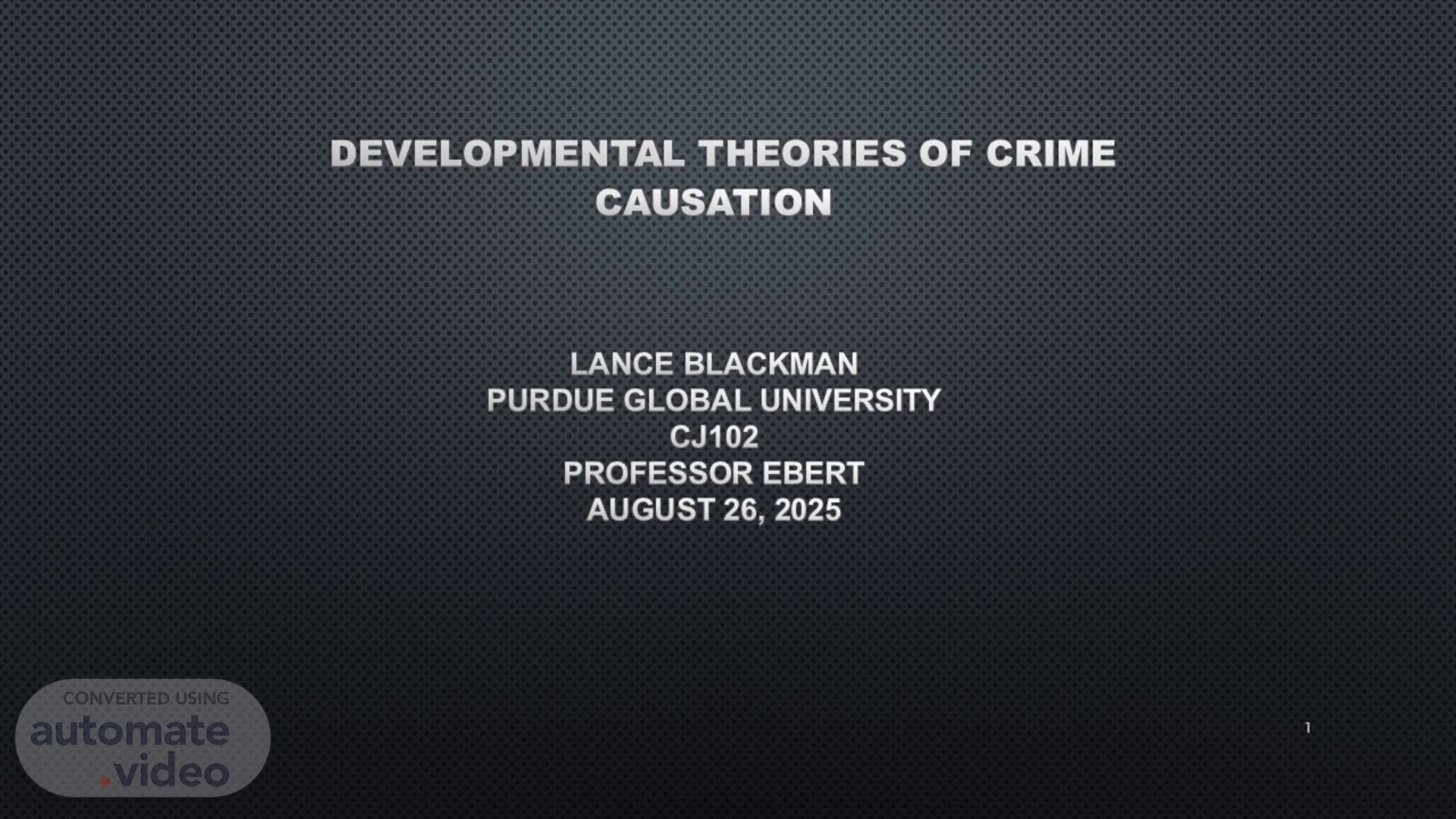 [Audio] Welcome to my presentation on developmental theories of crime causation. I plan to explore the three major theories that help explain criminal behavior, examine Cohen's Theory of Delinquent Subcultures, and analyze Anderson's Code of the Streets with current real-world applications. These theoretical building blocks provide essential perspectives for understanding how criminal behavior develops and continues in society..