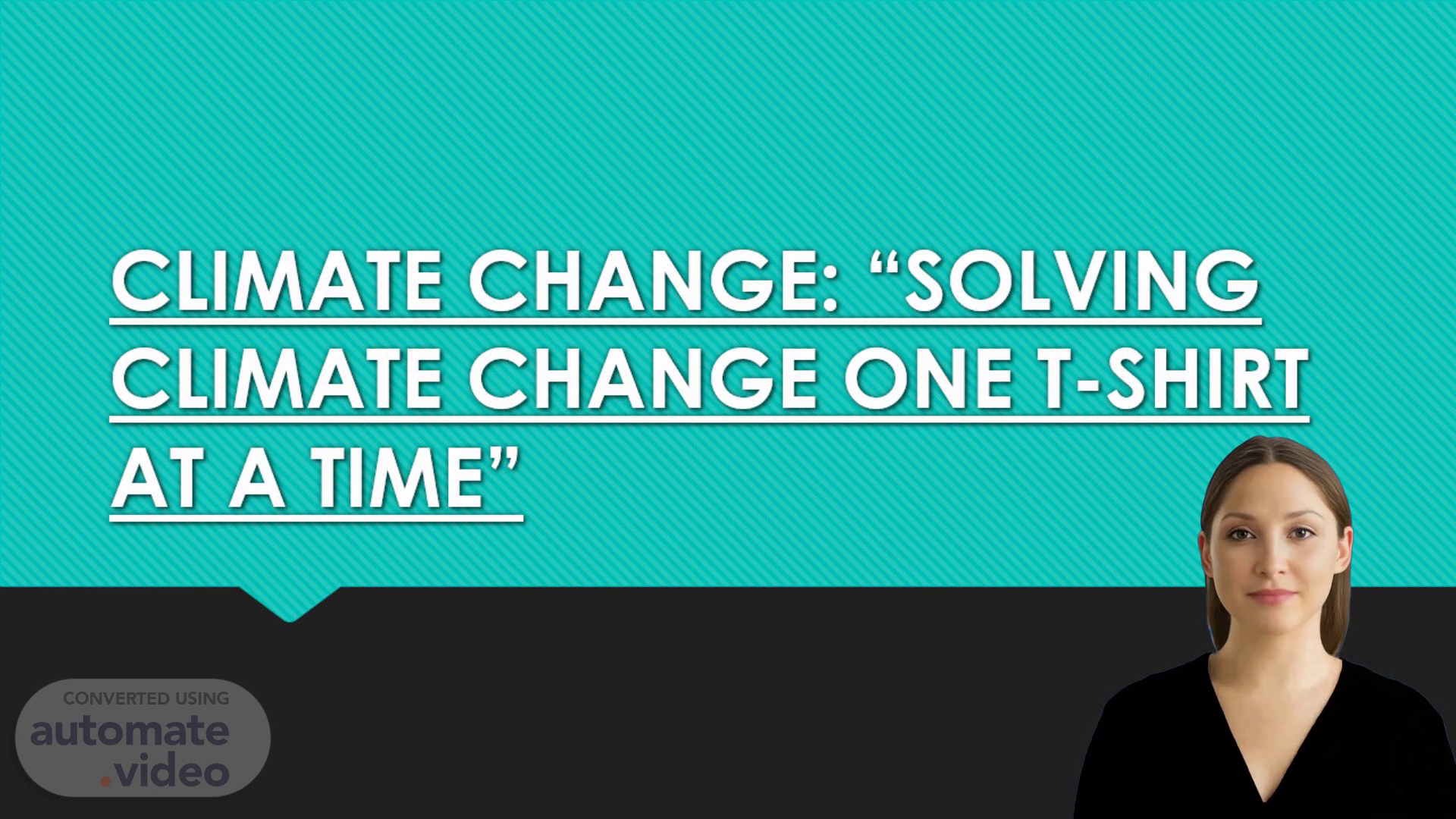[Virtual Presenter] Good morning everyone. Today we will be discussing a practical and creative solution for reducing our carbon footprint, and ultimately, fighting climate change. Let us begin by exploring how “Solving Climate Change one T-shirt at a time” is an effective approach..