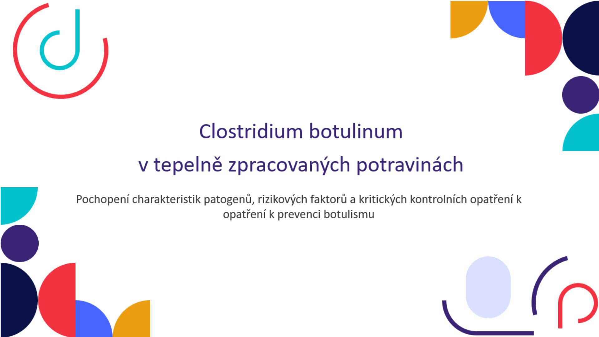 04 05 06 07 08 09 10 11 12 13 14 15 16. Úvod do Clostridium botulinum Klasifikace patogenů a technický význam Proteolytické vs neproteolytické kmeny Rozsah růstových teplot Limity pH pro růst a produkci toxinů Aktivita vody a účinky koncentrace soli Anaerobóza a tolerance kyslíku Tepelná odolnost spor Citlivost vegetativních buněk a toxinů na teplo Toxinogeneze a podmínky pro produkci toxinů Kontrolní strategie v surovinách a výrobě Kritické kontrolní body a monitorování kritických kontrolních bodů Normy pro konzervační a sterilizační procesy.
