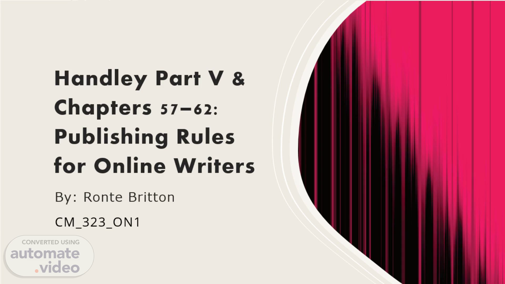 [Audio] Handley Part V & Chapters 57–62: Publishing Rules for Online Writers By: Ronte Britton CM_323_ON1.